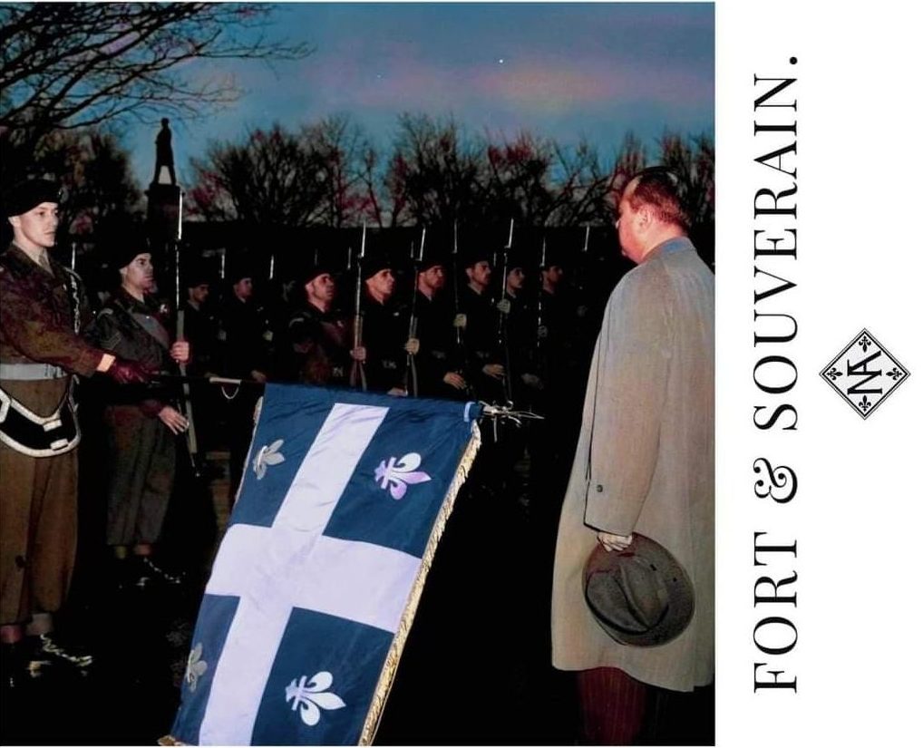 NB: Le fleurdelisé connut les champs de bataille de Corée; Maurice Duplessis remit en main propre l’étendard québécois à nos régiments pour que ceux-ci n’aient pas à combattre sous un drapeau anglo-saxon.