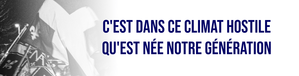 C’est en témoins consternés que nous regardons notre peuple devenir toujours de plus en plus minoritaire chez lui. Face à cette minorisation, il serait aisé de céder à la colère et à l’angoisse. Ce n’est pas notre cas. Malgré nos tripes nouées, nous choisissons de sublimer nos instincts primaires par quelque chose de plus élevé. Nous mettons nos énergies dans la camaraderie et dans l’action, dans l’engagement et dans la confiance. C’est toutefois avec un sentiment d’urgence soufflant dans nos voiles que nous assistons à la disparition tranquille d’une nation qui, pourtant, s’était donné il n’y a pas si longtemps le droit de rêver et les moyens de travailler à la prise en charge de son destin. C’est avec les poings serrés et les muscles bandés que nous sautons dans la mêlée, prêts à nous battre pour vaincre la tendance acculturatrice mortifère en passe de broyer une identité transmise de génération en génération depuis des siècles.